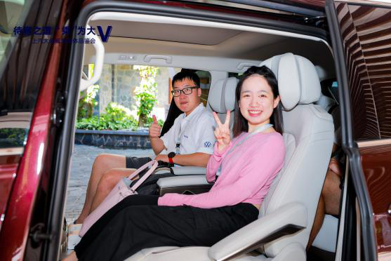 活动嘉宾到达,智能双侧防夹电动门打开,不管从哪一面上下车都很便利,进入车内的瞬间,七座超大空间震撼人心,大“V”驾到,果真不同凡响。坐在威然充满人性化设计的第二排礼宾座椅上,精艺的做工舒适无比,3种模式x3种档位气动按摩功能带来别样享受。