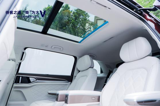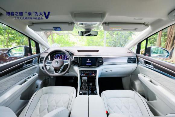 车内的布局、装饰,简洁大气而又不失豪华。头顶一片超大的的全景天窗,脚下踩的是长绒礼宾地毯,两边都有长长的储物格、座椅自带杯架。如果想为手机充电,自动分区空调下就有2个USB插孔,且全车充电插口多达10个,充电无忧。太阳晒了,有遮阳帘;想吹风了,可以放下车窗,车窗面积很大,观景感十足。威然设计力求给人尊贵的出行体验,也展现出威然超越同级的待客之道。