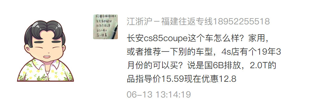 在15万左右买一款中型SUV,且要兼顾质量、口碑、油耗水准等方面,CS85 Coupe是非常不错的选择。虽然市场销量一般,但从产品力的角度来看CS85 Coupe确实是一款水准不低的车型。