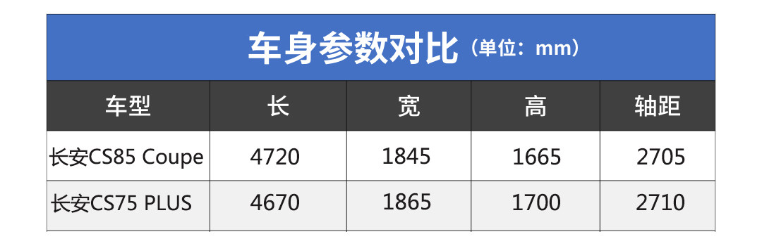 其实既然你看上了CS85 Coupe,不妨可以考虑自家的CS75 PLUS,目前该车在市场上销量非常不错,且两车的车身尺寸以及轴距上也十分相近,乘坐体验不会有非常大的区别。