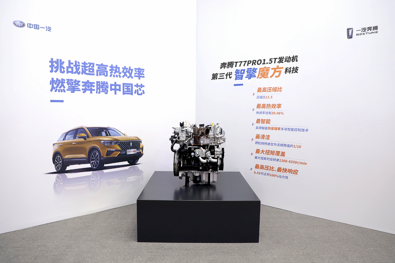 奔腾T77 PRO搭载的1.5T第三代“智擎魔方”发动机,以最高热效率39.06%的成绩,成为目前自主量产发动机通过第三方权威认证的最高水平,轻松获得001号“能效之星”的荣誉称号。