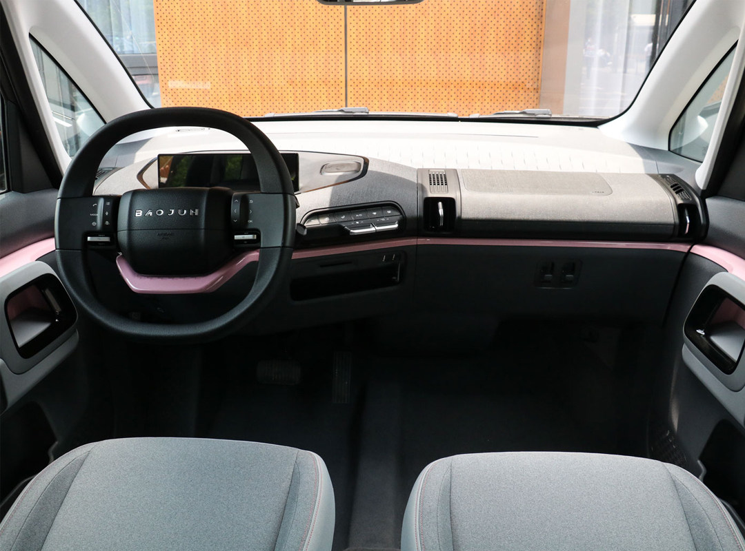 新车内饰配色采用了双色的设计,通过简单的线条勾勒进一步营造出简约、现代的座舱氛围,整体颜色以黑色基调为主,辅以粉色饰条进行点缀。
