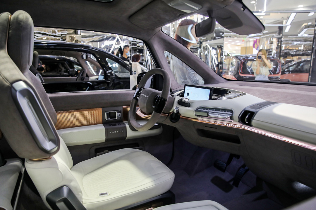 新车采用了双辐式多功能方向盘,内饰中吸引眼球的是采用了一块尺寸较大的全液晶悬浮式显示屏,整个内饰布局看上去清新简约,同时又能凸显其新能源车型的身份。
