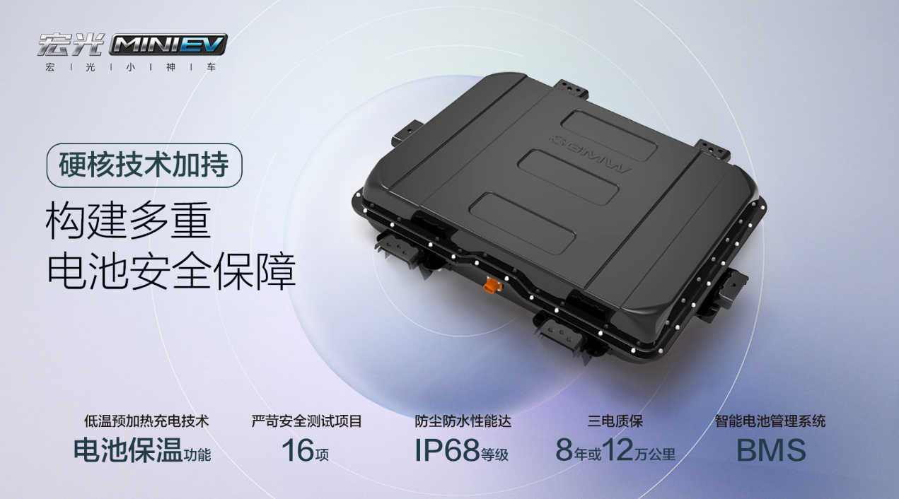 宏光MINI电动车以硬核技术打造超乎其价位的可靠电池,搭载低温预加热充电技术和电池保温功能,可以在低温充电状态下对电池预先启动升温并让电池包温度保持在 15-20℃,在充电情况下能持续保温长达24小时,动力性能相较其他无保温车型提升50%,整体续航里程提升10%,有效解决冬季续航打折问题。