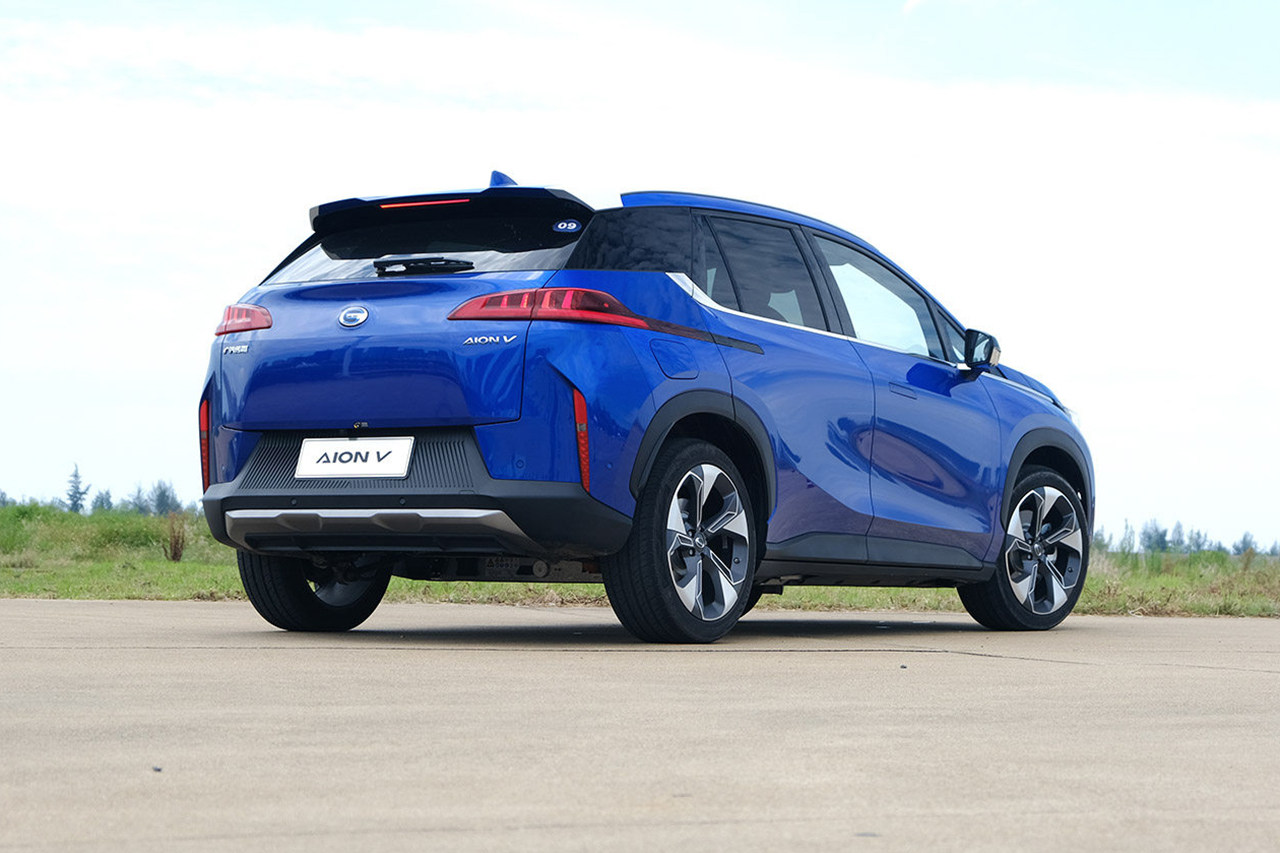 尾部埃安V还是很有自己的风格,没有刻意通过设计压低视觉中心,反而很自信的洋溢出了高耸的姿态,车身前后都有不少竖状的设计元素,尾灯也采用了常规左右分开的设计。