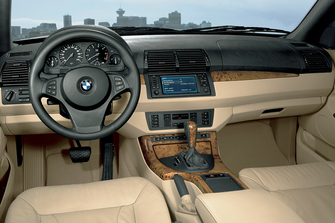 产品力方面,当时的X5外观设计采用跟第四代5系(代号E39)相似的外观设计,天使眼大灯设计在当时就开始使用,内饰采用了真皮+实木材料,在当时来讲豪华体验已是相当出众,并且配备拖车稳定控制、自适应大灯。