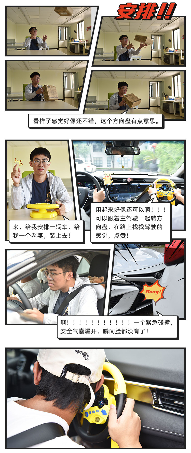 所以,基于这个安全隐患,这个方向盘自己在家练习的手感就好了,可不要真的放在副驾驶上,还开上路去试!