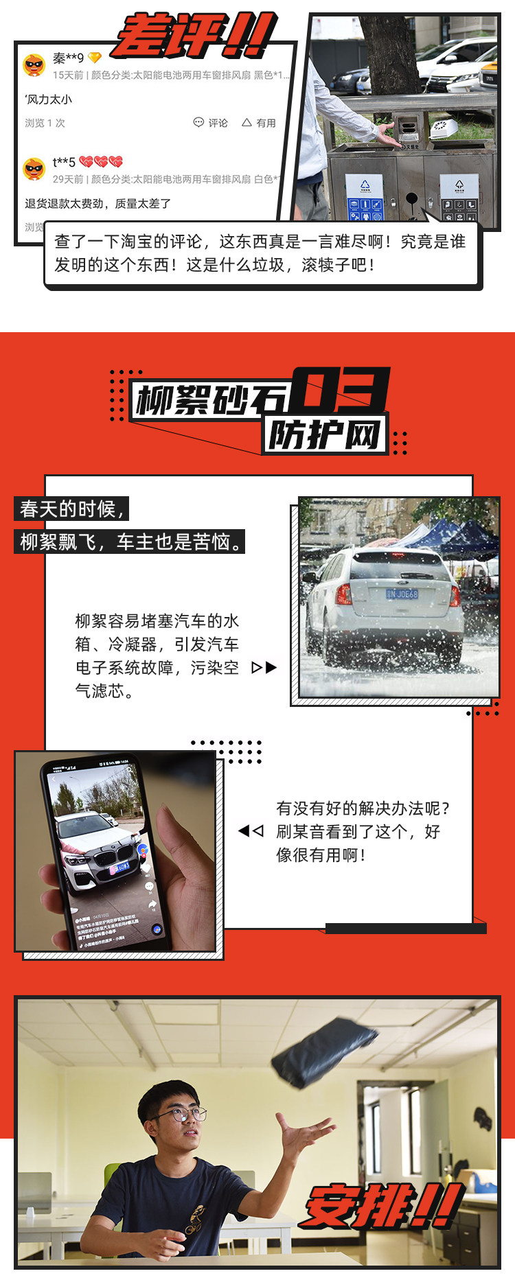 看了一下某宝的评论,也是五花八门啊!有网友说这个防护网还是不错的,遮挡柳絮砂石能起到一定的作用,缺点只是集中在易损坏、太丑、遮挡号牌这些方面。不过,九块九包邮的东西能用则用吧。