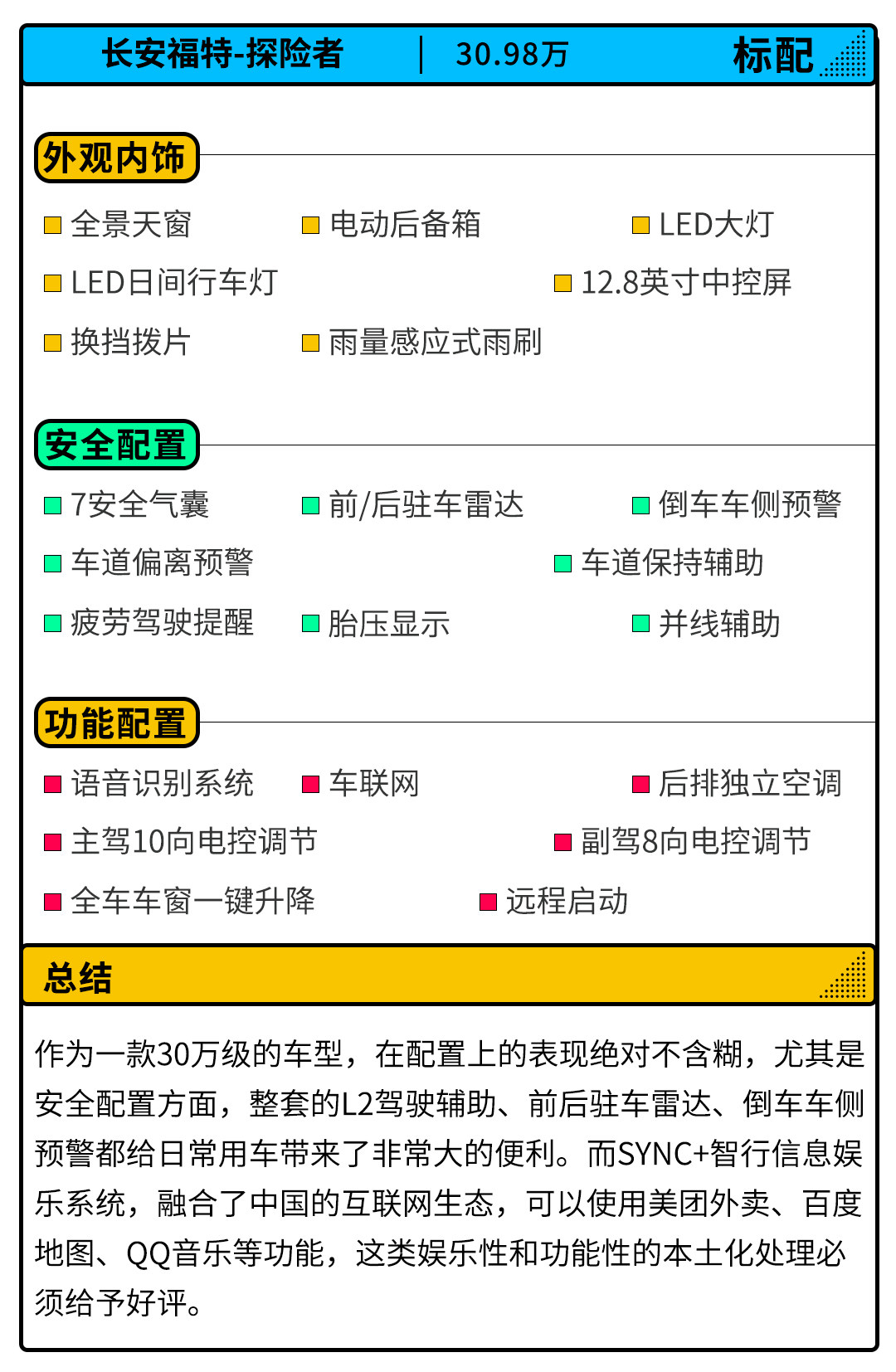 在平台技术的引进和针对国内市场的本土化处理之间,探险者算是取得了一个比较不错的平衡,可见长安福特对于引进这款旗舰SUV还是做了比较多的前期准备。虽然一些内饰做工的细节存在小短板,但瑕不掩瑜,这依旧是一款出色的大6/7座SUV。而在市场表现趋于稳定后,福特应该也会对车型放出一定的优惠加持,因此车辆未来的市场表现还是十分值得期待的。