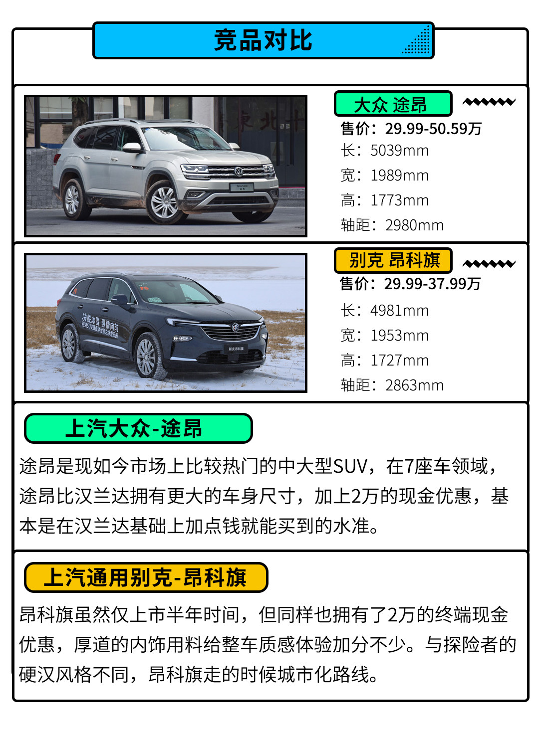 在对比两款竞品车型后不难发现,探险者是其中车身尺寸和轴距最大的SUV,但是两款竞品车型如今在市场上早已有了足够吸引人的现金优惠加持。而探险者作为市场新人,在售价上给出的诚意肯定不及两位“前辈”那么给力。