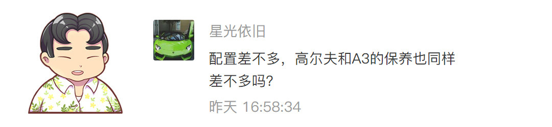 这个问题非常好,虽说奥迪A3和高尔夫属于同平台产物,且动力总成和技术上也有着非常高的相似度,但是在养车成本上好像买买君也并没怎么关注过两车的养车花销,今天我们就来以两款车型的保养来讨论一下。