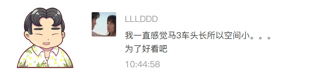 马自达3 昂克赛拉的空间水准是由自身的轴距以及悬架结构设计所决定的,而非车头占据了较大车长,其实长车头短车尾的标准三厢造型只是为了更适合国内消费者对于传统三厢车的审美需求。但有一说一,这一代马3相较上一代车型在空间和实用性上已经做了很大的进步。