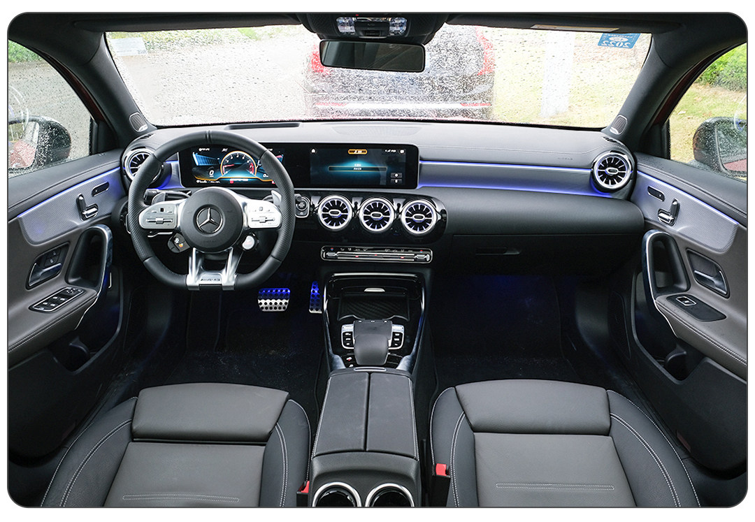 A35 L另一个给人以百万级豪车错觉的环节,当属内饰。敞开车门,浓厚的豪华气息扑面而来,遍布舱内的64色氛围灯以及“煤气灶”空调出风口营造的奢华氛围让副驾女孩难以招架,仪式感这块拿捏得死死的。