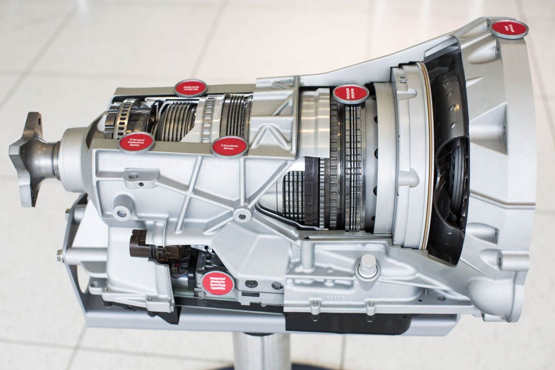 并且采用全铝制造,重量仅106公斤,而最大承受扭矩甚至可以高达800N•m,这也是扭矩高达672N•m的福特F-150采用这款变速箱的理由。