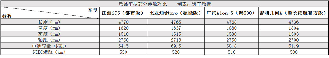 所以在iC5这款产品出来前,江淮就有针对性地根据当时市场上的“电动三杰”:比亚迪秦Pro EV、广汽新能源Aion S、吉利几何A作出优化性升级。