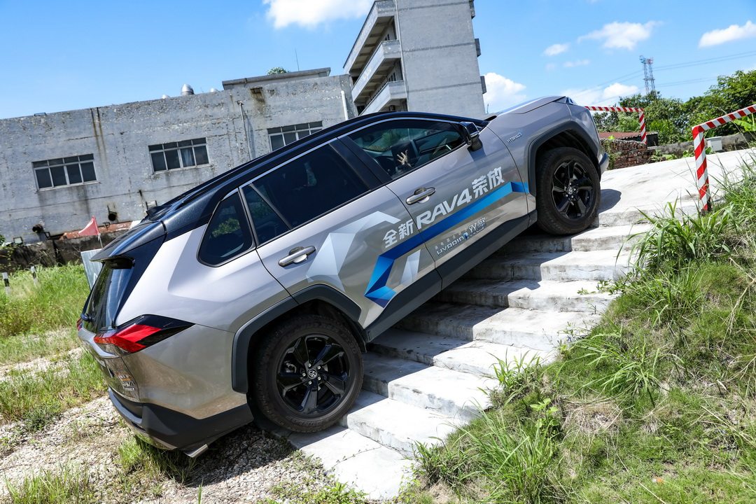 RAV4荣放的接近角和离去角分别为18.1度和20.3度,具备一定的越野能力,现场上个楼梯对RAV4荣放来说是没什么问题的。
