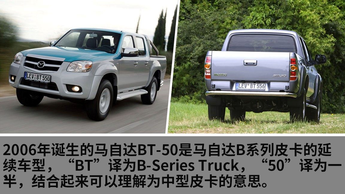但要说纯正的皮卡故事,还得数1961年诞生的B1500。这台车可以说是马自达皮卡的开端,从1961年到2005年,B系列皮卡共发展了六代车型。而马自达为了迎接新时代,在2006年正式推出了新一代B系列皮卡—BT-50,也就是今天的主角。