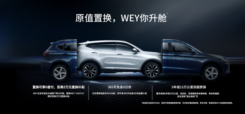 不仅如此,在金融政策的支持以及售后服务方面也做到了豪华品牌该有的水准。WEY品牌推出“原值置换 WEY你升舱”用户关爱举措,不仅献上至高100%原值置换、限时高至2万元置换补贴、免费6次基础保养服务为旧爱保“价”,同时提供了36期0息、365天免息0日供、60期超长低息等多种零压力换购方案实力宠粉,为新老用户开启全新用车生活的同时,借助差异化用户思维,构建服务优势,引领中国汽车品牌全面进阶。