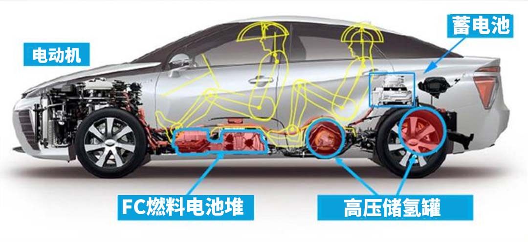 Mirai的动力系统由氢燃料电池、电动机、蓄电池和高压储氢罐组成,结构相对比较简单,其中氢燃料电池就像一个小型发电站,通过氢气和氧气的化学反应便能产生电,不像其他纯电动汽车那样需要充电,没电了只需添加氢气即可。