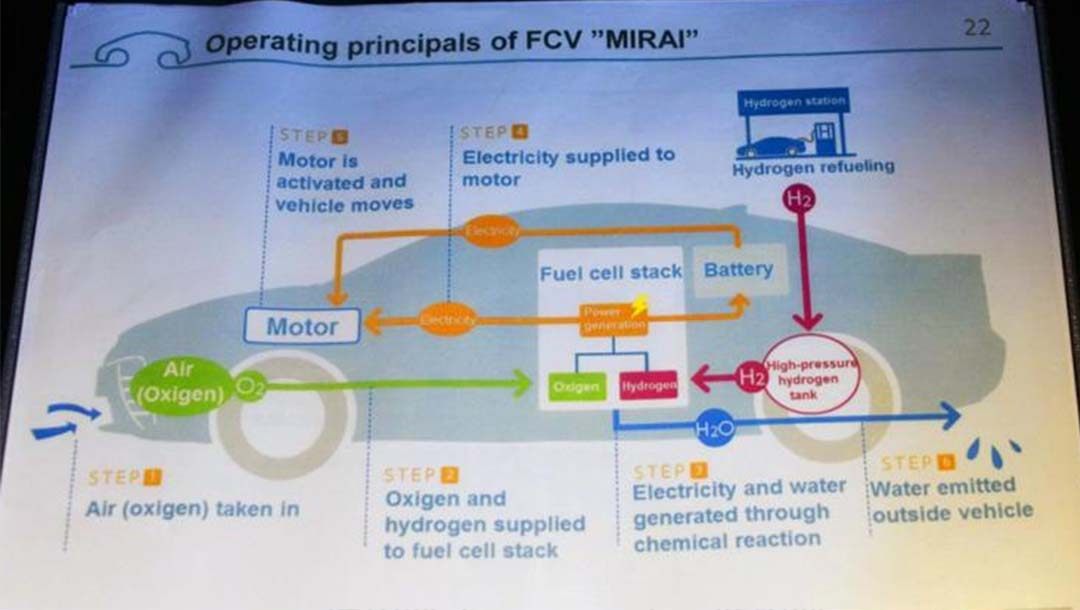 搭载在Mirai上的这套氢燃料电池,就像一个小型发电站,通过氢气和氧气的化学反应便能产生电,不像其他纯电动汽车那样需要充电,没电了只需添加氢气即可。