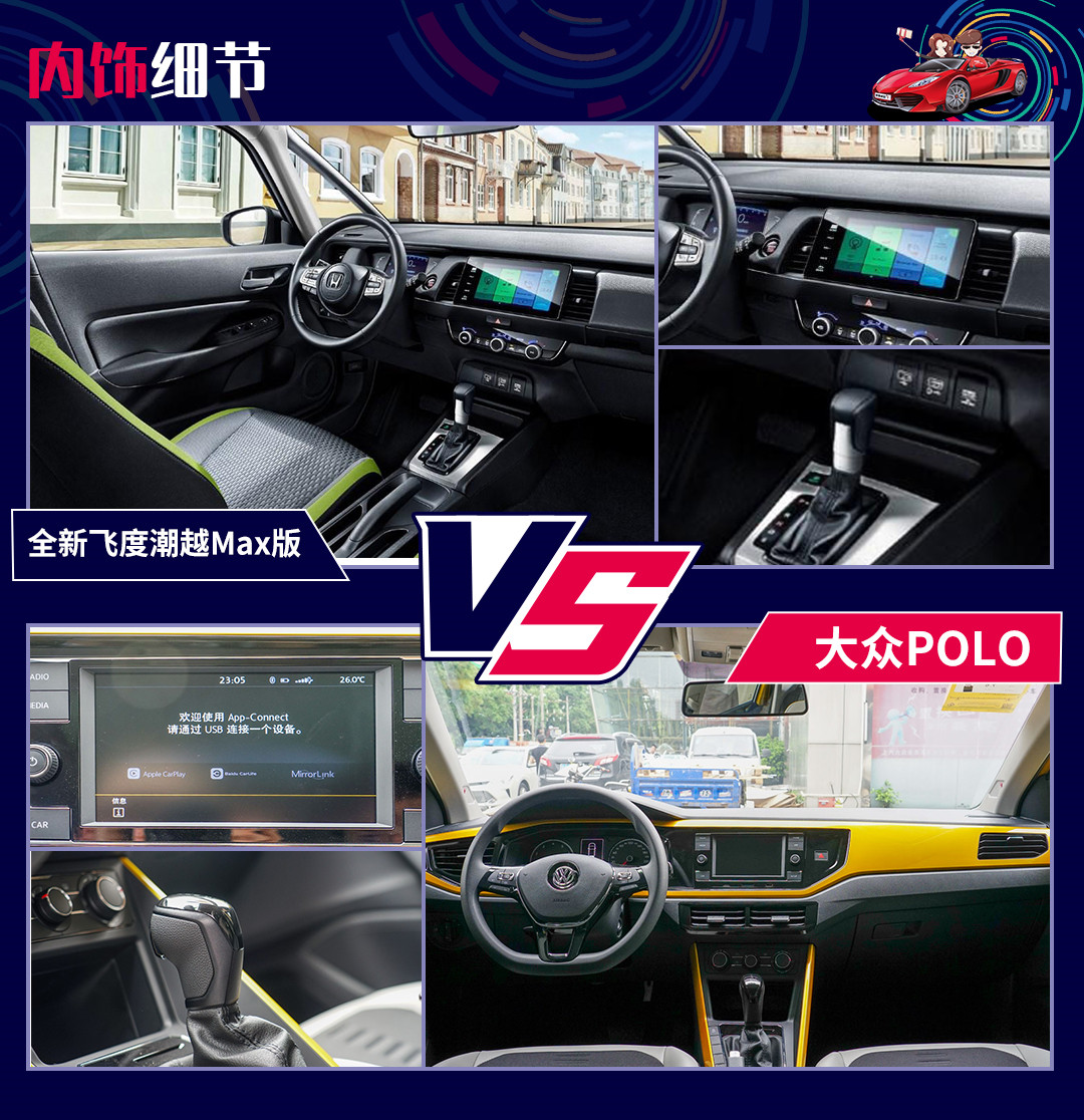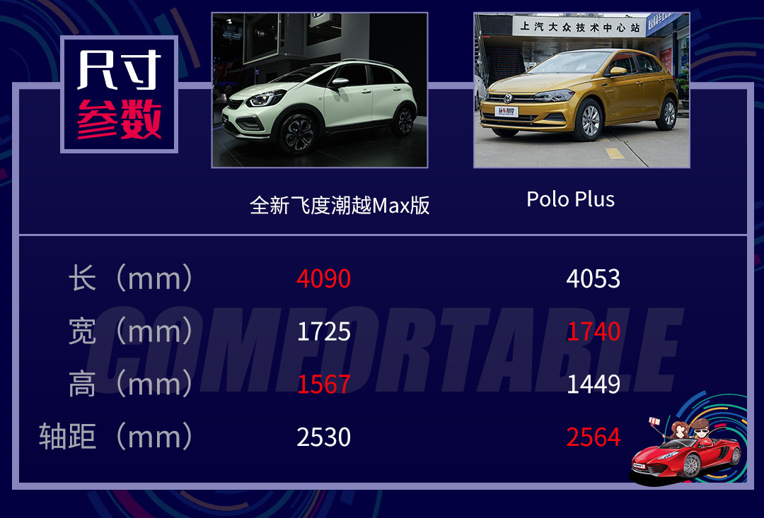 尺寸方面,二者互有长短,全新飞度潮越Max版在长度和高度上占优,而Polo Plus则在宽度和轴距上占优。