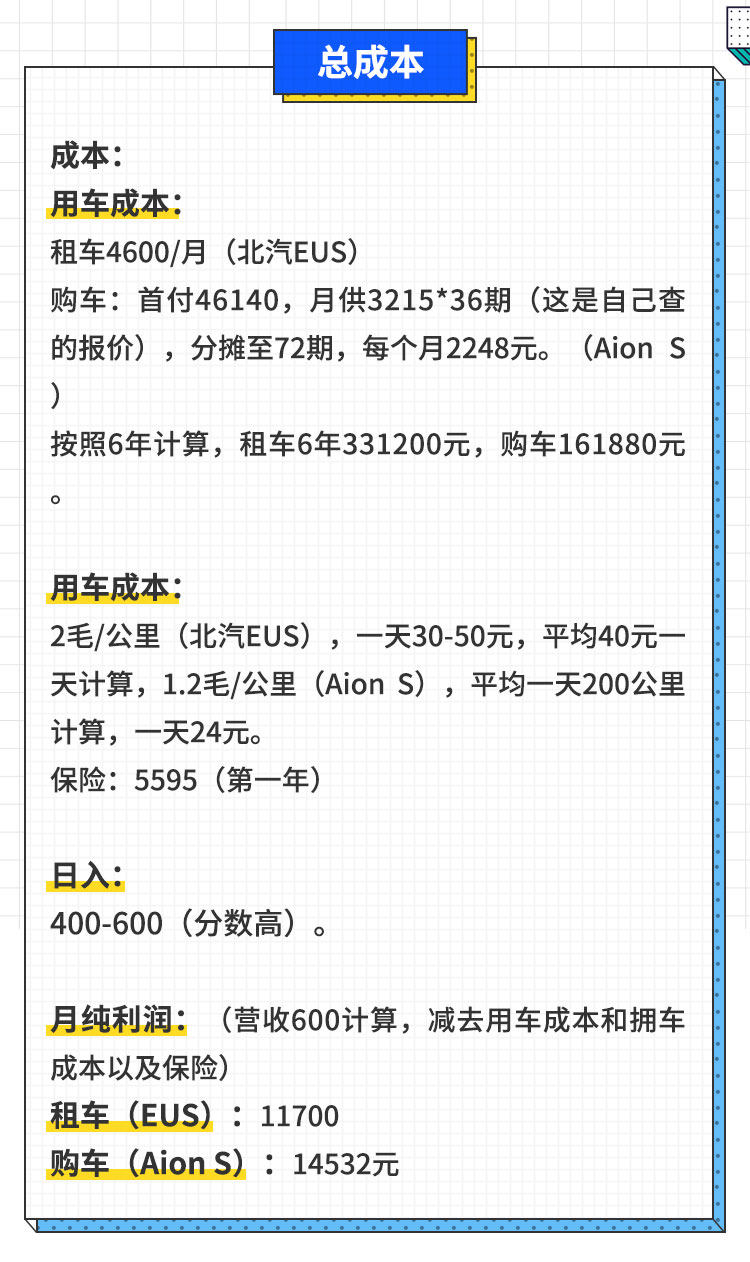 教授也算了算,这台车如果租6年,那么成本是27.36万元,而这款车新车顶配才17.08万元,所以还是买车比较划算。