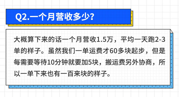 货拉拉一天的单量不多,2-3单,一单的工作量可能需要1-2小时,就整体而言,货拉拉的工作时长是比较短的。而且货拉拉的收入不只是车辆运费的收入,还包括等待费用,搬运费用等,一个月收入1万多5,纯利润也有1万上下。