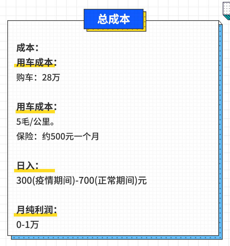 这位司机相对沉默寡言,七座车的很多细节我们不得而知。但是可以看到,七座车的市场主要还是面向商务出行,所以疫情期间收入会比较少。正常情况下,七座车能够月入1万多(净利润),但是如果没有商务出行,它可能是要亏钱的。