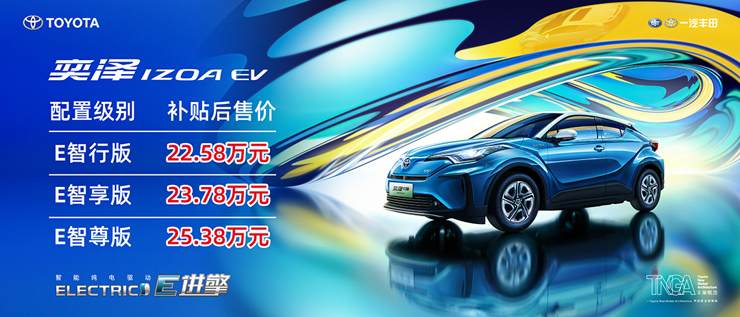 “E进擎,奕未来”,2020年6月20日,基于一汽丰田TNGA丰巢概念,依托丰田在电动化领域23年耕耘的首款纯电动车型——奕泽E进擎满电亮相成都,与消费者共探蓉城底色,开启属于奕泽E进擎的纯电时代。