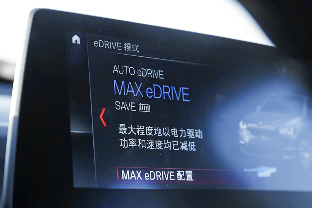 在AUTO eDRIVE模式下,车辆在低速行走时会以纯电驱动,一旦深踩油门,引擎便会迅速介入工作,假若电量充足,车辆纯电极速能去到90km/h;在SAVE BATTERY模式下,内燃机除了驱动车辆,还会适当为动力电池充电,避免电池出现过放现象;而在MAX eDRIVE模式下,车辆优先采用电机驱动,车辆纯电极速高达120km/h,一旦油门到底激活“kick down”按钮,引擎将迅速介入工作。