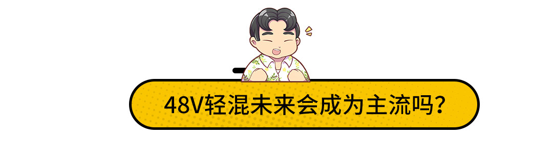 相对来说,48V轻混车型,只是额外添加一台小功率电机,在发动机怠速或者车辆加速时,将电能转化为动能,不仅提高了加速平顺性,也能在怠速时,为车内空调等电器提供电量,以此来降低油耗。