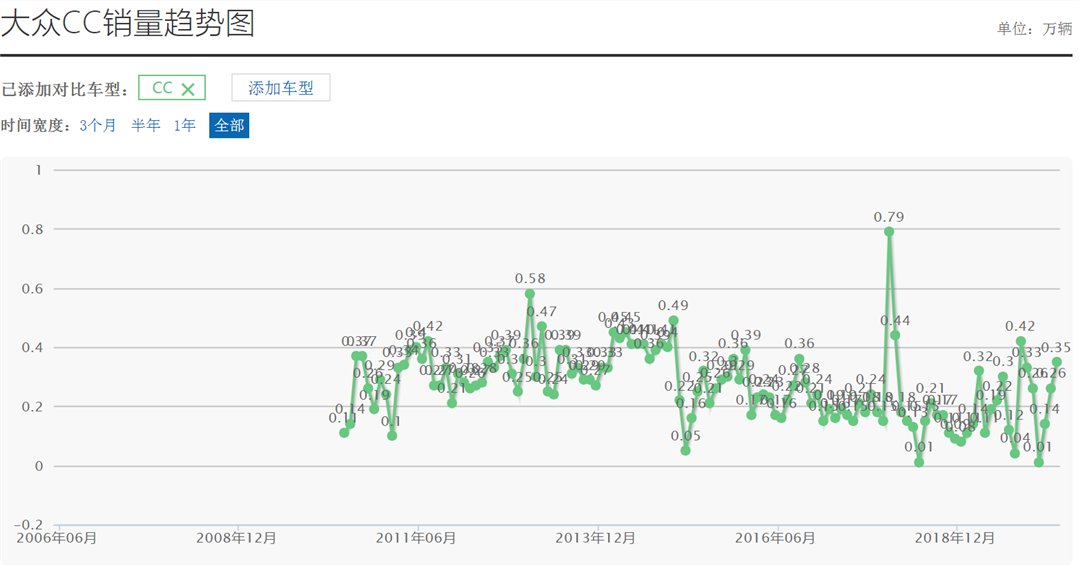 然而国产却让CC开始走下坡路。第一代国产CC还好,仍凭借进口版光环“热销”了几年(轿跑车里算不错了),而2013年推出的第二代国产CC因为颜值崩塌,销量大滑,如今第三代CC即使颜值重新上线,也没能恢复第一代的往日荣光。