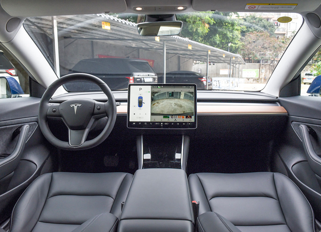 敞开车门,可以发现特斯拉Model 3的内饰没有任何多余的设计元素,只要能缩减的都被削减掉了,就连平常所见的中控台似乎都已经被无情削减,所有功能都集成到了那块15英寸的液晶触控中控屏幕上面,集成度非常高。