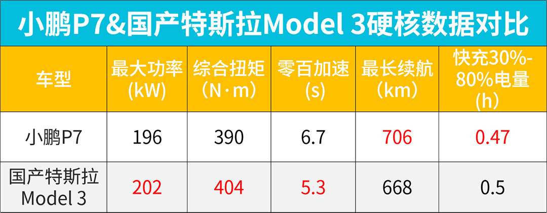 而国产特斯拉Model 3匹配的三元锂电池,最长续航能提供668km。不过,相比起小鹏P7最长达到706km的续航里程,足足缩短了38km,在续航上小鹏P7要稍胜一筹。
