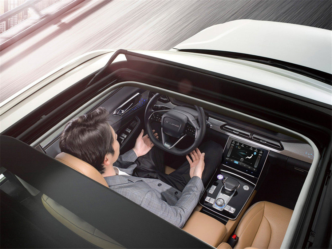 新车内饰采用极简主义风格,视线被一块液晶仪表+两款液晶中控屏共三块大屏所吸引,车内功能调节几乎都被集成在触控屏中,仅在挡把周围和方向盘上保留少量物理按键,故个人感觉新车内饰风格依然与造车新势力的产品或是概念车很像。
