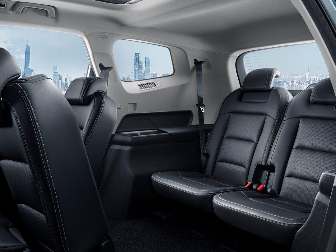 豪越全系均可选装第三排座椅,选装后进取版和豪华版第二排座椅会从一体式升级为三个独立座椅。而旗舰版本身第二排就是三个独立座椅,选装第三排后会绑定升级三温区自动空调。