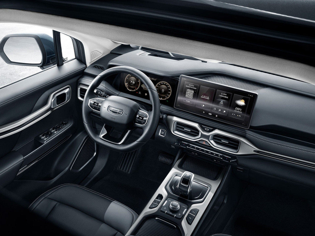 豪越的内饰采用吉利品牌家族化设计,虽然亮点不多,但比较耐看,且即使配备了中控大屏,但像空调和音响这类平常开车常用的功能也保留了物理按键,方便边开车边盲操。可要是论储物空间和功能性,豪越想跟汉兰达比,还是显得班门弄斧了。