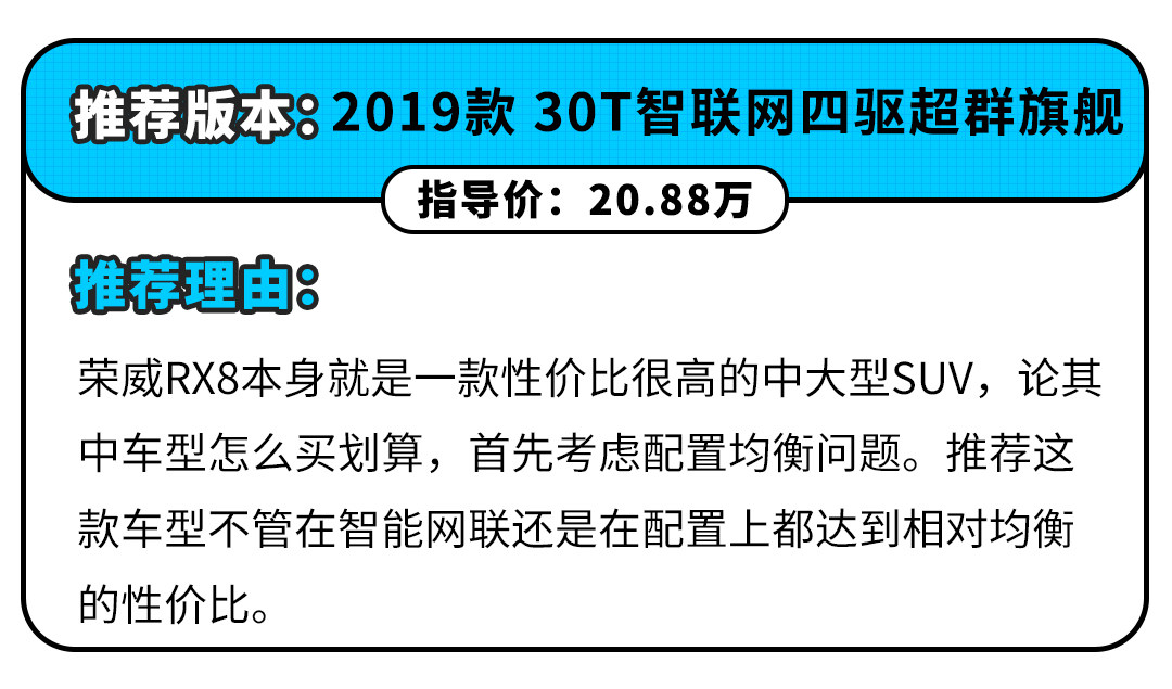荣威RX8的诞生主要是荣威品牌是对豪华与更高级别的车辆定位的冲击,其车辆各方面表现早已超出了其售价所带来的期望,给了买买君极大的惊喜,而且在市场销售终端有着近2万元的优惠。