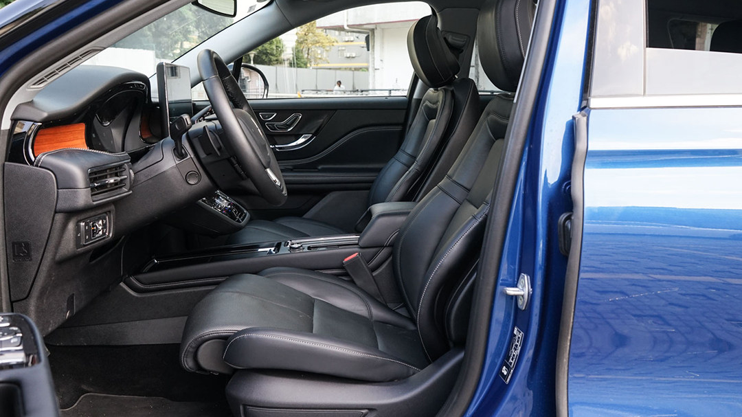 精致,是这款SUV的第二特点。全LED光源、在A柱上的后视镜、贝壳式发动机盖,这些比较讲究工艺的,我们就按下不表。因为内饰的精致度更甚,林肯传统的典雅设计,加上大面积软质材料、钢琴烤漆面板的点缀,从实际表现充分说明自己美式豪华品牌的本质。