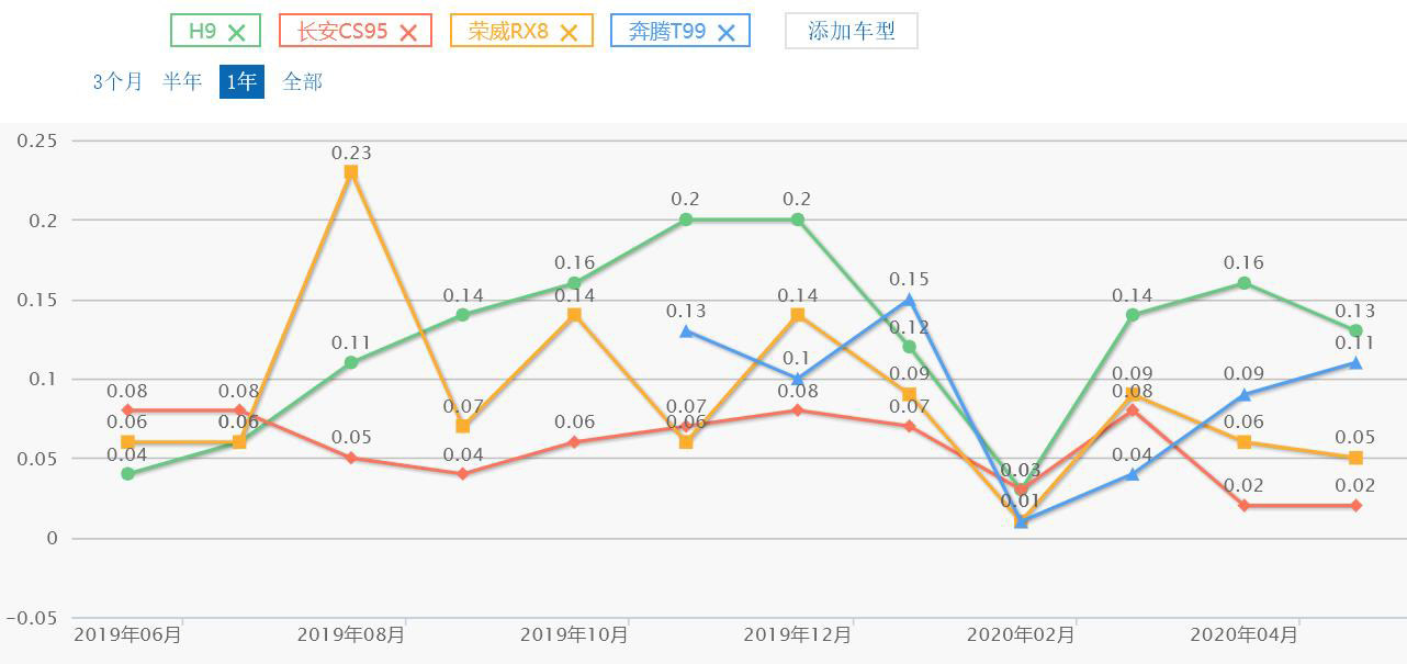 而自主品牌阵营,选择更是少之又少,主要是哈弗H9、长安CS95、荣威RX8,其他车型的讨论意义不大,可以看到在自主阵营这边,表现比较理想的哈弗H9也不过年销1万多点,大体来看自主的中大型SUV并不特别受欢迎。