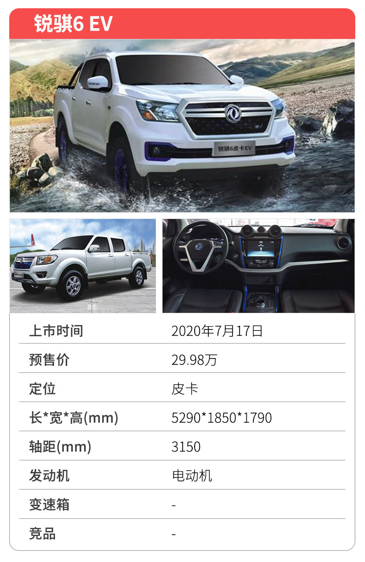 教授认为,对于短途、低速形式的物流业、工程业来说,纯电动汽车是完美之选,行驶成本更低,并且低扭更强,短途以及固定场所使用还保证了充电条件。或许郑州日产就看上了这点,推出了新锐骐6 EV这款纯电动皮卡。新车货厢尺寸为1510*1562*475mm,保证了装载性,对于一款纯电动皮卡来说这至关重要。动力方面,则是搭载163马力的电动机,峰值扭扭矩达到了420牛·米,NEDC续航为403km,能够胜任一般的物流、工程需要。但高达29.98万的预售价,或许会让目标人群望而却步,毕竟燃油版的皮卡一般只需要其一半价格。
