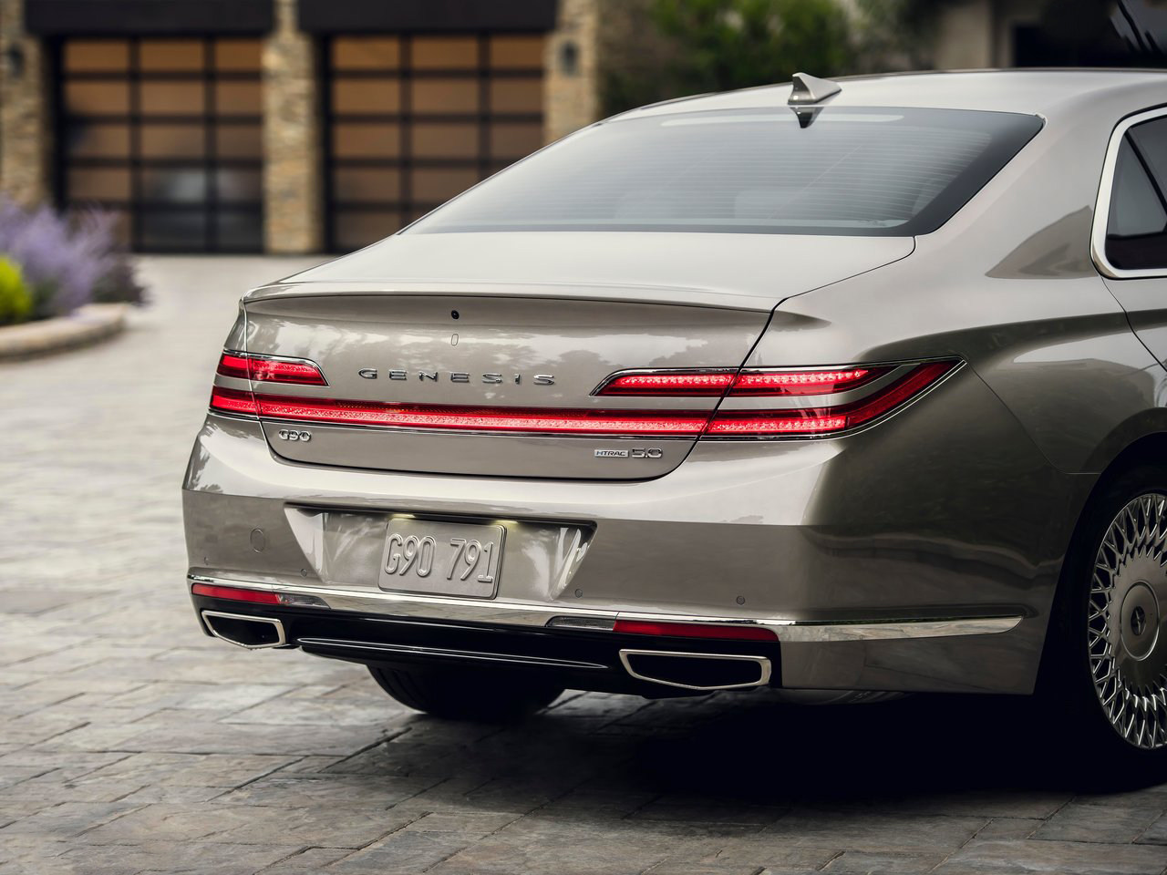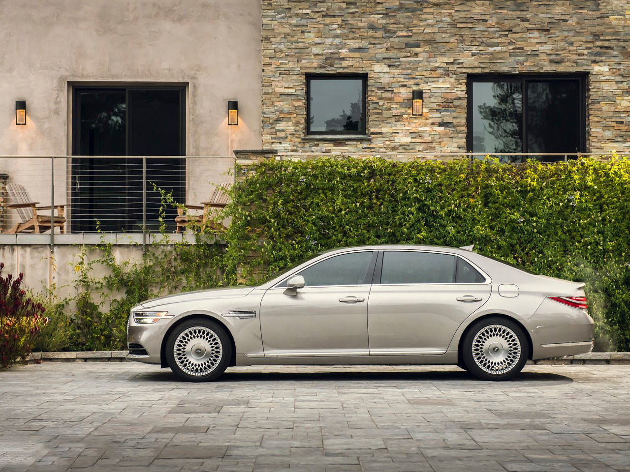 捷尼赛思G90的腰线从车头延伸至车尾,勾勒出修长的视觉效果,密集辐条式的轮圈进一步营造豪华感。