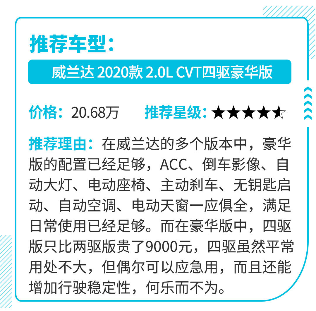 在售价方面,威兰达整体比RAV4荣放更亲民,但相应的配置也有所区别,但差别不会太大,至于两车如何选,主要看个人更钟意哪个外观了。