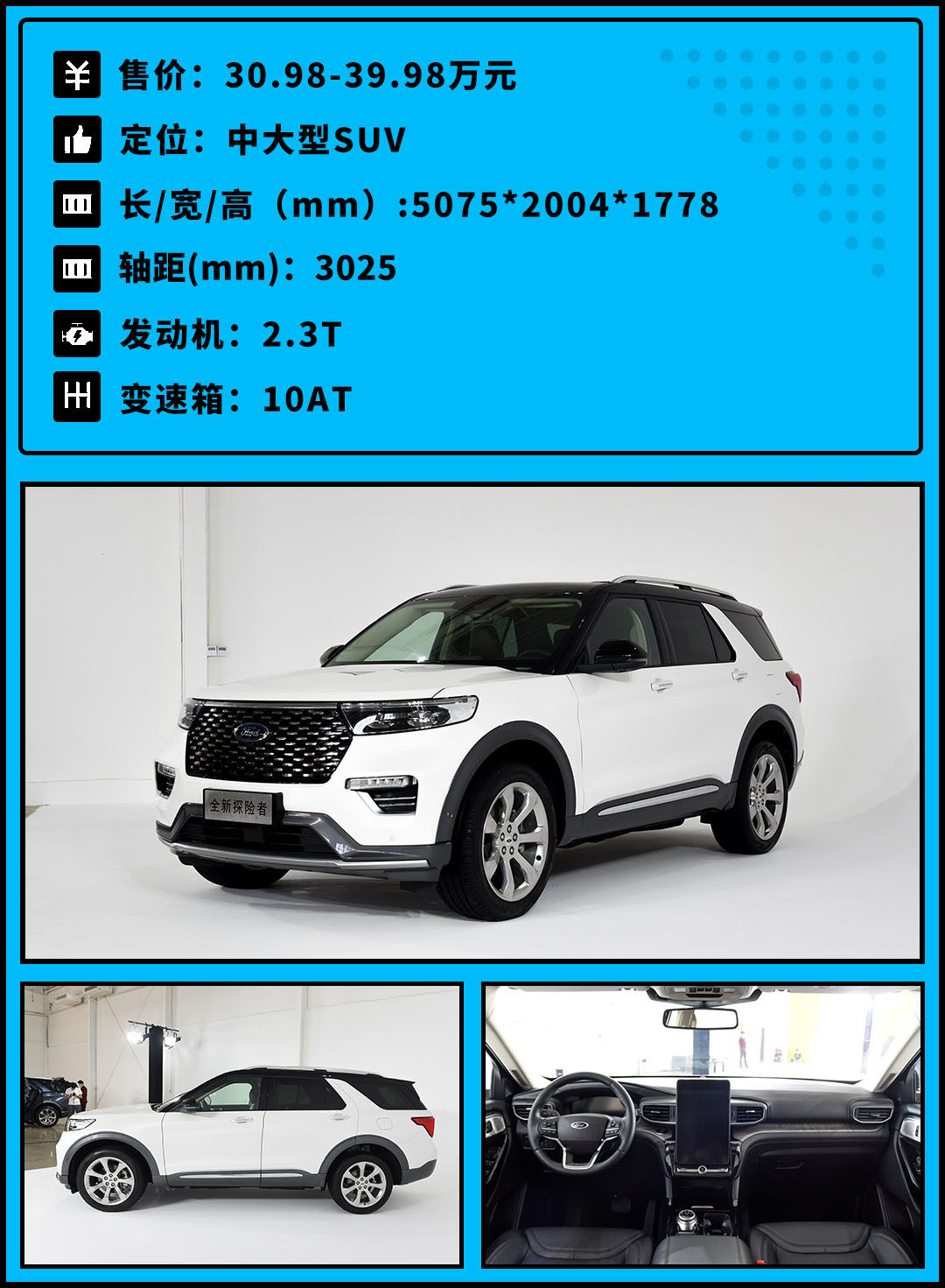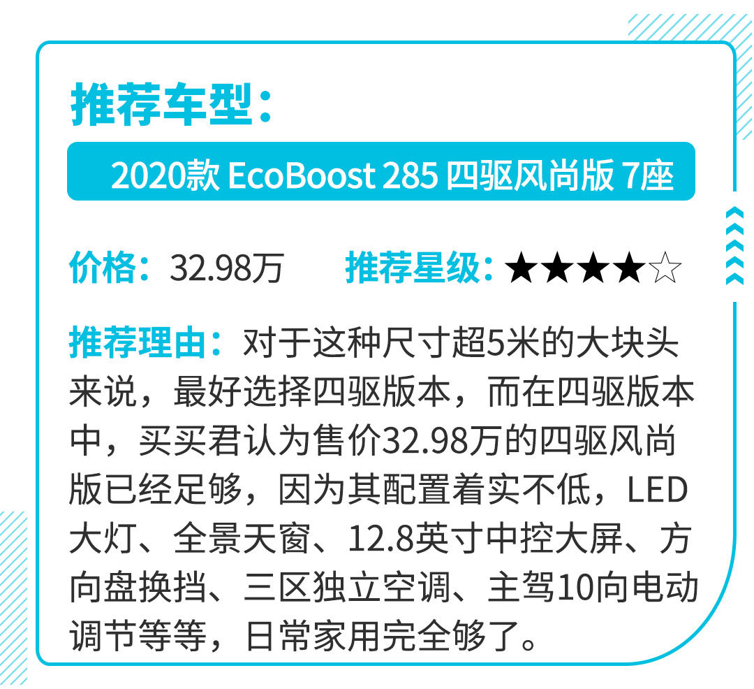 在国内30万元价格区间的中大型SUV市场,产品虽然不少,但始终没有一款后驱车型,直到探险者的出现。林肯飞行家相同的CD5纵置后驱平台打造、50:50前后配重比、2.3T+10AT的动力总成,这些都赋予了这台车身超5米的大块头不一样的操控感。