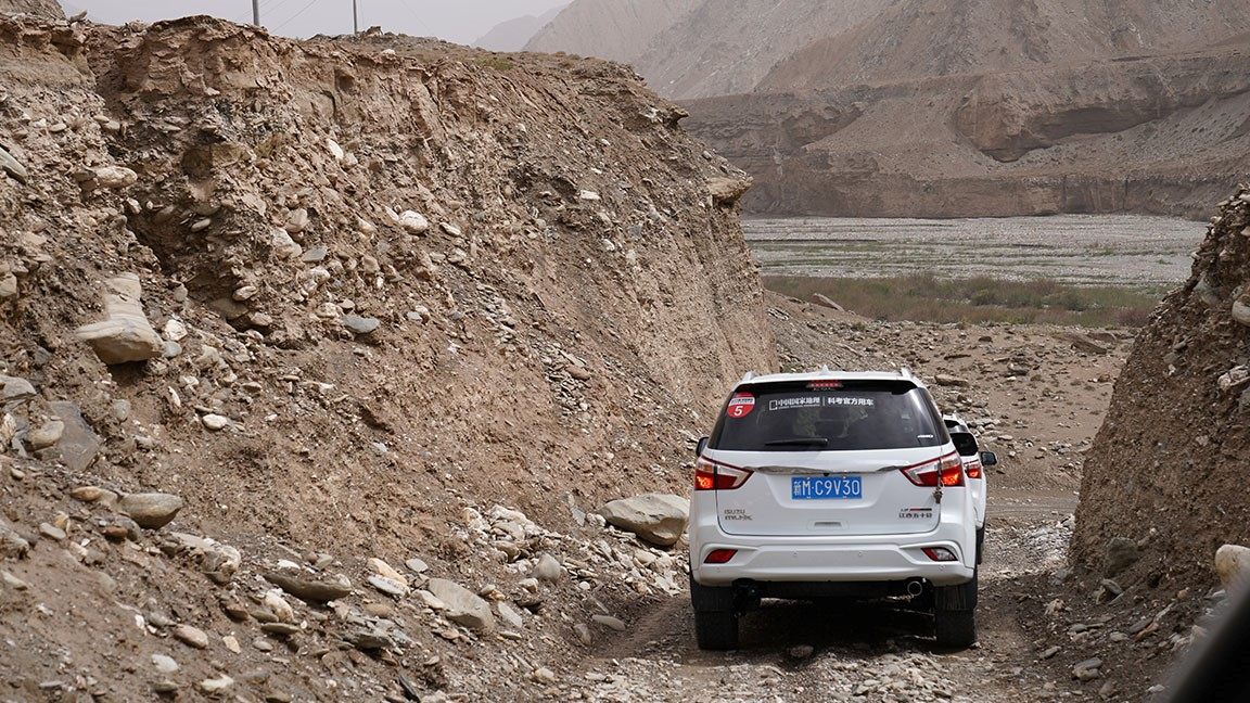 通往冰川的道路是一条非铺装碎石路,颠簸的路感很容易让人感到不适,并且会加重高原反应,尤其是在接近冰川处的海拔已经超过5000m。同时这些路况非常不稳定,途中我们就遇上了断石路,此时低速四驱模式就得以发挥。值得一提,即使海拔从4500m瞬间提升至5050m,牧游侠和D-MAX也没有出现任何抛锚的情况,表现还是相对稳定。