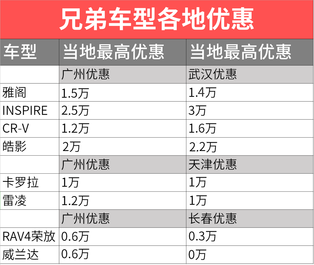 教授经常在后台会被问到卡罗拉和雷凌、RAV4荣放和威兰达怎么选的问题。出于各种原因,一个品牌如果在国内有两家合资厂,那么同一款车型进入国内国产会被分成两个车型由不同的合资厂生产,这时候我们就称这两款车型为兄弟车型。