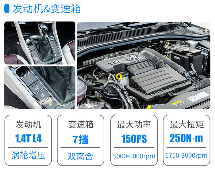 再看2019款 280TSI DSG旗舰版 速腾,搭载大众自主研发的EA211系列1.4T发动机,匹配7速双离合变速箱,最大动力输出150Ps、250N·m,和思域177Ps、220N·m的账面数据相差不远,但实际零百加速比思域慢了1秒,前者9.1s,后者是8.0s。