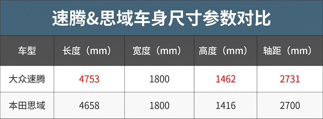 不可否认,空间历来都是消费者购车的核心关注点之一,根据账面车身尺寸数据,定位A+级的速腾不管是长、宽 、高还是轴距,相比思域稍占上风,这也为它给国内消费者提供更大更实用的空间打下了坚实基础。