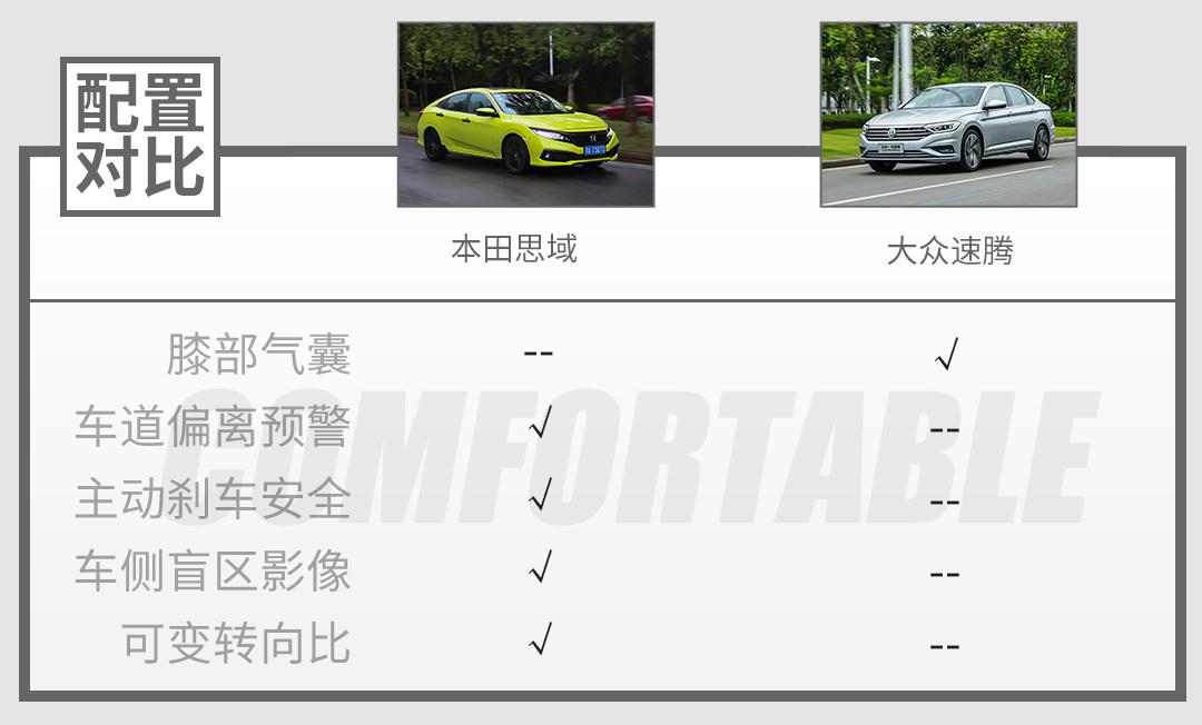 配置之于车辆,就如调味料之于主菜,虽然成不了主角,但丰满且实用的配置却也是车辆的加分项,为此在配置上思域和速腾也没少花心思,这点从它们的配置下放程度就可以窥见一二。