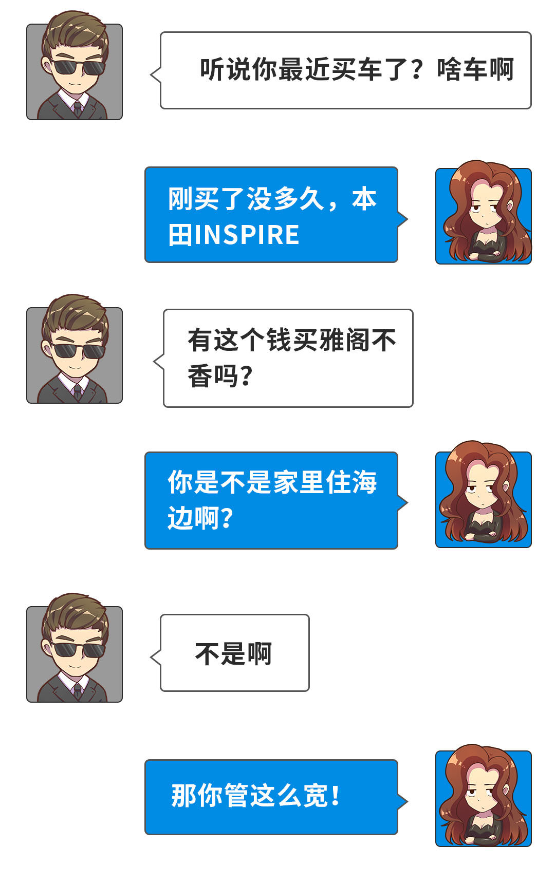 所谓存在即合理,没用你的钱买,就不要那么多指指点点。古人有云,君子有容人之量,小人存忌妒之心,你所说的话无时不刻不在暴露自己,别人买了什么车,更应该的是祝福。